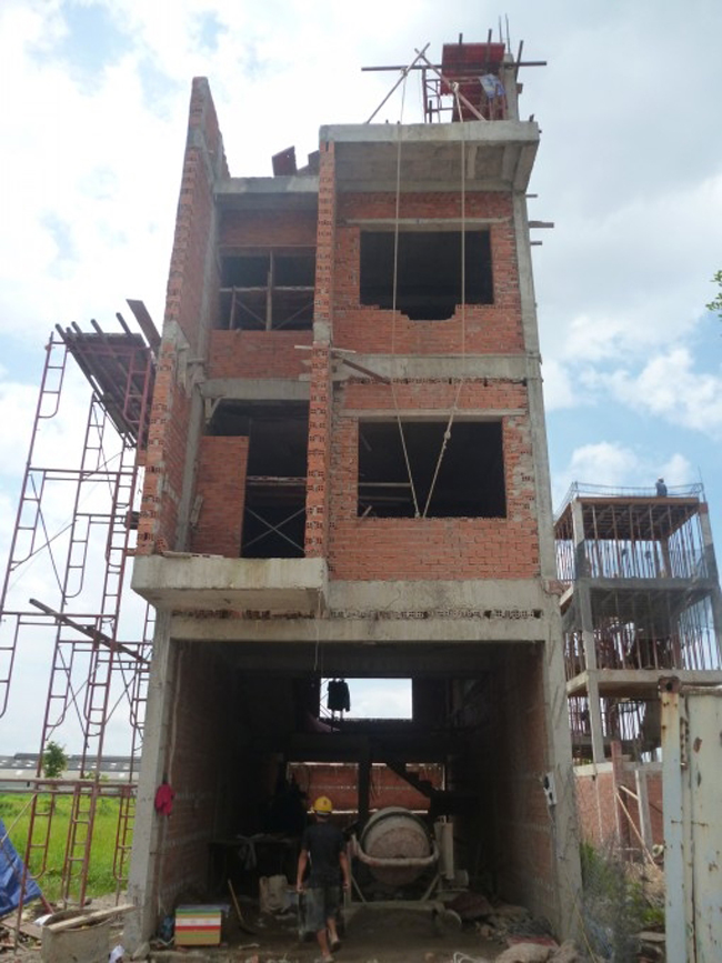 Gia công lắp dựng cốt thép, cốp pha, đổ bê tông cột, dầm, sàn, cầu thang. Công tác thi công xây dựng tường bao cũng như tường ngăn chia gian phòng của ngôi nhà, công tác đục khoét các đường âm tường, tô trát tường, san nền,…